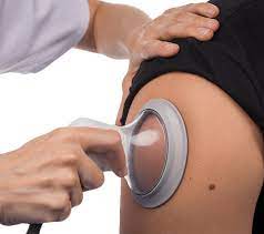 This is one of our favourite pieces of technology, because it generates active negative pressure that helps to improve lymphatic circulation in the area we are treating – similar to cupping, but with modern technology benefits.   We can modify the pressure during a treatment and the combination of negative pressure with the high frequency vibration sees clients achieve relief and improved mobility faster.